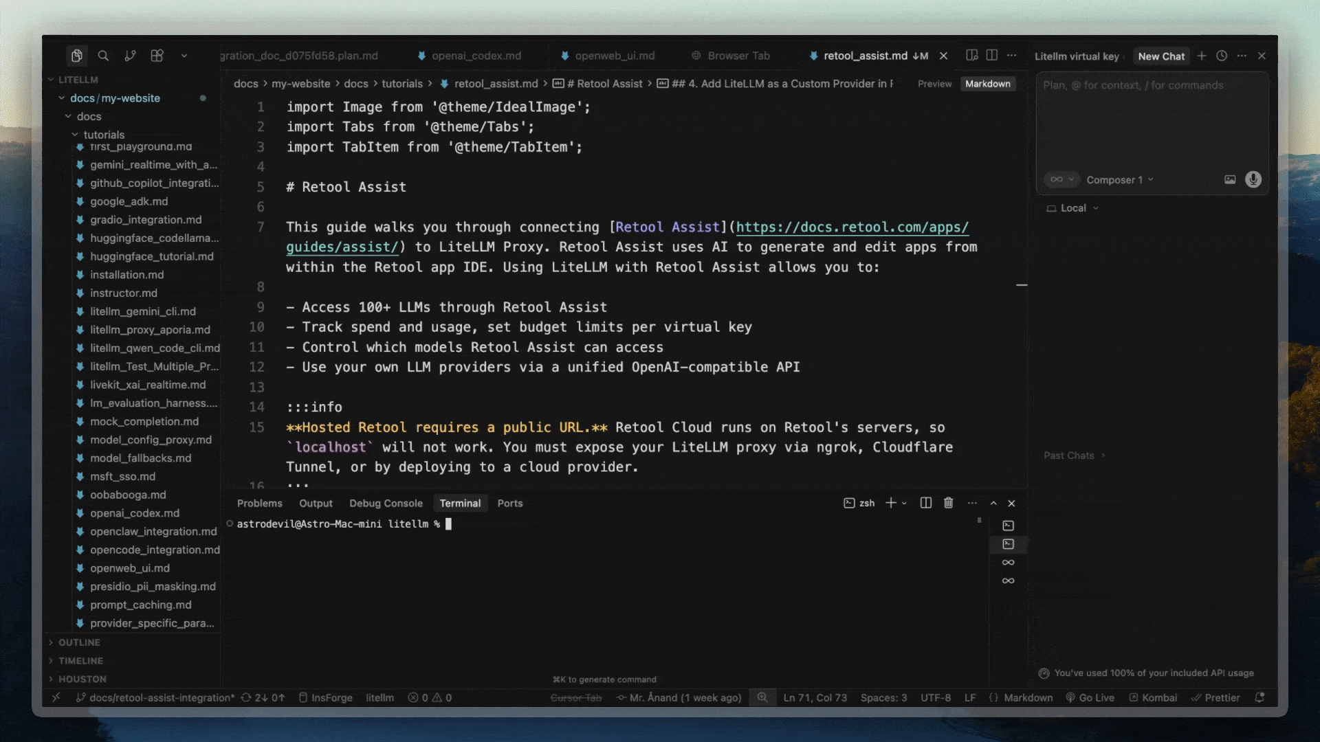 - Use Assist to generate or edit app elements, it will route requests through LiteLLM